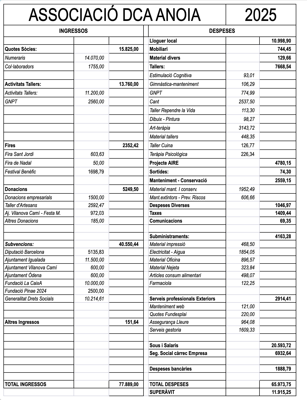 DCA Anoia: Entitat inscrita en el Registre d’entitat de la Generalitat de Catalunya amb el número 66588 | NIF: G67551515 | Entitat adherida a la Xarxa per la inclusió d’Igualada.